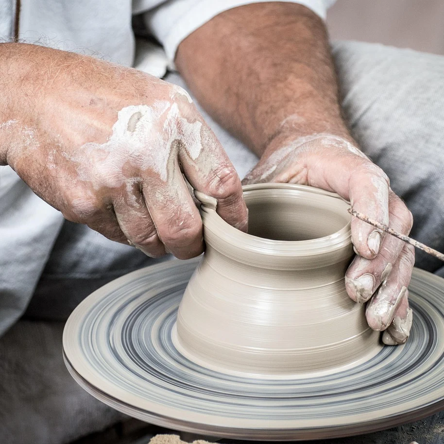 Grès, étain, céramique salée, ardoise. Chaque pièce raconte l'histoire du territoire.